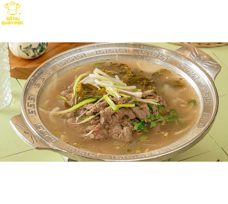 Nhà Bò Tơ Quán Mộc phục vụ đến 4 món nhúng tươi ngon, nóng hổi, đậm đà để thực khách lựa chọn theo sở thích. Những ai thích ăn thịt bò tơ mềm non, mọng nướng thì mời thưởng thức bò tơ chúng, những ai thích vị béo ngậy, giòn dai thấm đẫm nước hầm bò thì mời thưởng thức gàu bò nhúng. Dân sành ăn yêu thích vị thịt dai mềm vừa phải thì bắp bò nhúng là lựa chọn tốt nhất. Cuối cùng, món đuôi bò nhúng sẽ là món khoái khẩu tuyệt vời dành cho dân nhậu thứ thiệt!