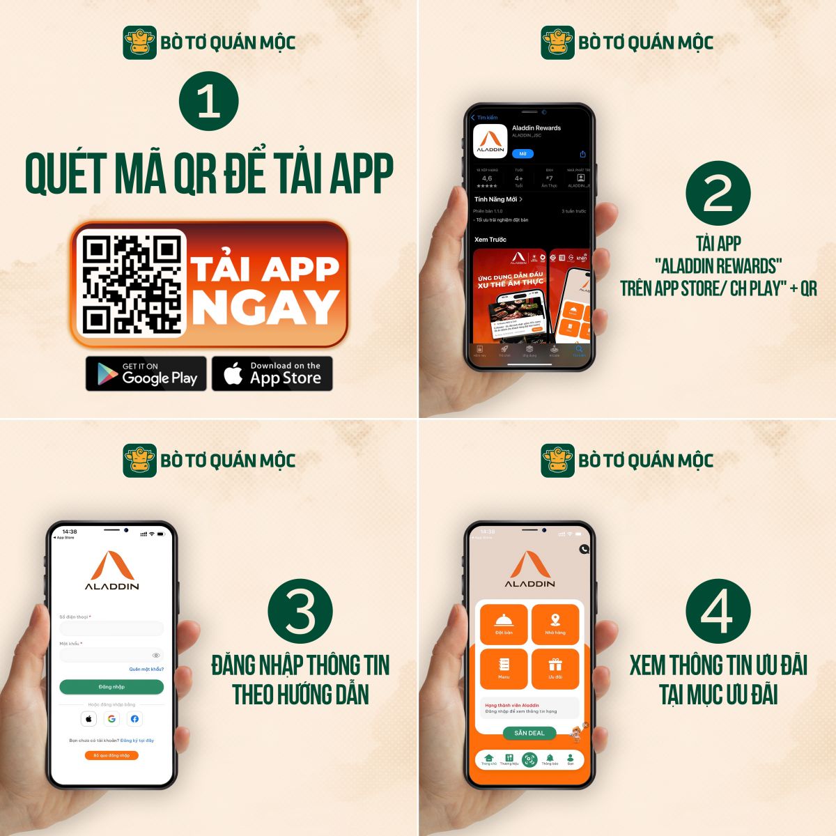 - Mỗi khách hàng sẽ có một thẻ thành viên riêng trong đó sẽ được tích hợp vào số điện thoại cá nhân, bao gồm các thông tin như: thông tin ngày sinh nhật, số điểm đã tích lũy… để hưởng những ưu đãi độc quyền tại Bò Tơ Quán Mộc